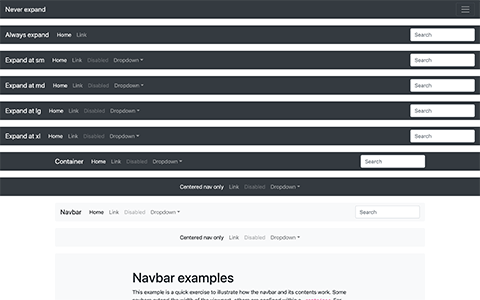 Demostración de todas las opciones de respuesta y contenedor para la barra de navegación.
